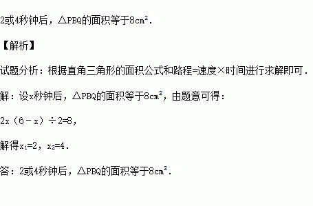 (2014秋•浦东新区期中)如图,在△ABC中,∠B=90°,AB=6cm,BC=12cm,点P从点A开始沿AB边向点B以1cm/s的速度移动,Q从点B开始沿BC边向C点以2cm/s的速度移动,如果点P、Q分别从A、B同时出发,几秒钟后,△PBQ的面积等于8cm2?