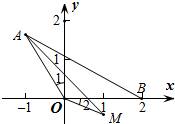 解答 解:如图,∵A(-1,$\sqrt{3}$)、M(1,-$\frac{\sqrt{3}}{3}$),且B(2,0),