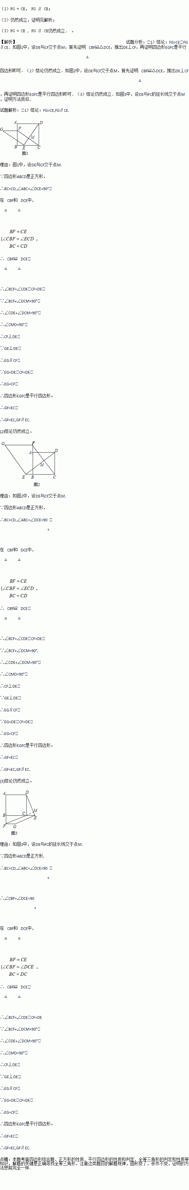 (3)如图3,若点E、F分别是BC、AB延长线上的点,其它条件不变,(1)中结论是否仍然成立?请直接写出你的判断.