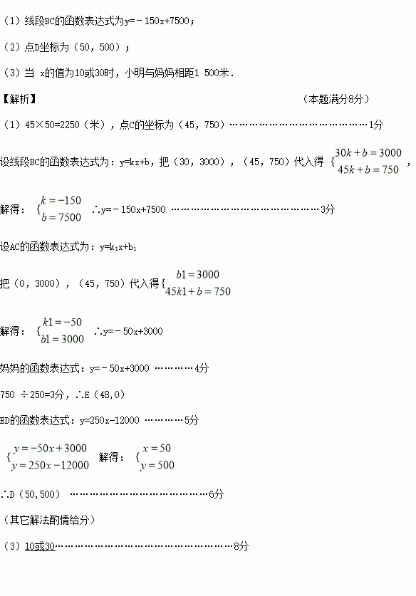 (3)当 x的值为 时,小明与妈妈相距1 500米.