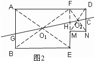 (2)如图2所示:连接2个矩形的对角线的交点的直线即把这个图形分成2个相等的部分.即OO′为这个图形的一条面积等分线,直线O1O2即是其中的一条;![]()