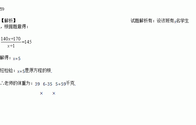教室里有几名学生,这个时候一位身高170厘米的老师走进了教室,使得教室里所有人的平均身高从140厘米变成了145厘米,使得所有人的平均体重从35千克变成了39千克,则老师的体重是_________千克.