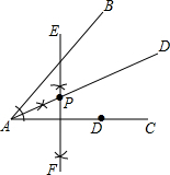 分析:先作∠BAC的平分线,然后作AD的垂直平分线,其交点即为所求点P.