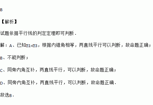 如图,直线l1、l2被直线l3、l4所截,下列条件中,不能判断直线l1∥l2的是( )