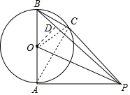 (2)根据sin∠PBC=sin∠BPO=$\frac{DO}{OP}$,设OA=OB=x,由AB=AP,∠PAB=90°,可得∠OBD=∠DOB=45°,推出OD=$\frac{\sqrt{2}}{2}$x,OP=$\sqrt{5}$x,由此即可解决问题;