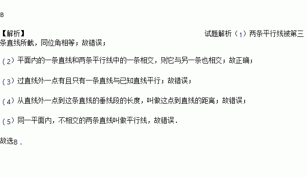 (2)平面内的一条直线和两条平行线中的一条相交,则它与另一条也相交;
