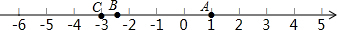 (1)已知点A,B,C表示的数分别为1,-$\frac{5}{2}$,-3观察数轴,与点A的距离为3的点表示的数是4或-2,B,C两点之间的距离为$\frac{1}{2}$;