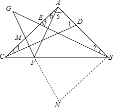 分析 (1)首先证明△ACD≌△ABE,得出∠1=∠3,再由∠BAC=90°,可得∠3+∠2=90°,结合FG⊥CD可得出∠3=∠CMF,∠GEM=∠GME,继而可得出结论.