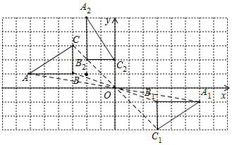 (2)如图所示,△A2B2C2即为所求作的三角形.![]()