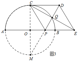 (3)由点Q在⊙O上,∠CQP=90°,推出∠CQP所以对的弦CM是直径,由∠M+∠OPM=90°,∠QPE+∠QEP=90°,∠OPM=∠QPE,推出∠M=∠QEP,易知∠PCM=∠M,∠PCQ=∠PEQ,推出∠PCO=∠PCQ=∠CEO=30°,由此即可解决问题.