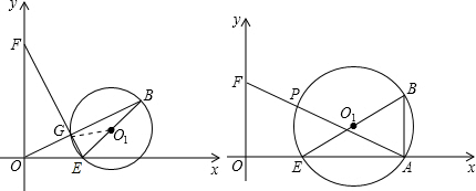 分析 (1)要判断点G与⊙O1的位置关系,只需比较O1G与⊙O1的半径O1B的大小.设点E出发t秒,则E(t,0),F(0,2t),用待定系数法求出直线EF和直线OB的解析式,确定点G的坐标,用两点间的距离公式计算出O1G与O1B的大小,从而进行判定;