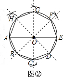 分析 (1)作AE的垂直平分线交⊙O于C,G,作∠AOG,∠EOG的角平分线,分别交⊙O于H,F,反向延长 FO,HO,分别交⊙O于D,B顺次连接A,B,C,D,E,F,G,H,八边形ABCDEFGH即为所求;