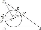 解:延长MI角BC于N,作MH⊥BC于H,作ID⊥AB于D,IE⊥BC于E,如图,