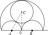 分析:首先连接OC,AC,设⊙C半径为x,由各圆两两相切,⊙O半径为2r,⊙A、⊙B半径为r,可得CO⊥AB,OA=r,AC=r+x,OC=2r-x,则可得方程:r2+(2r-x)2=(r+x)2,解此方程即可求得答案.
