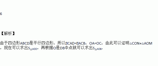 如图所示,平行四边形ABCD中,对角线AC,BD相交于点O,过点O的直线分别交AD、BC于点M、N,若△CON的面积为2,△DOM的面积为4,则△AOB的面积为_______.
