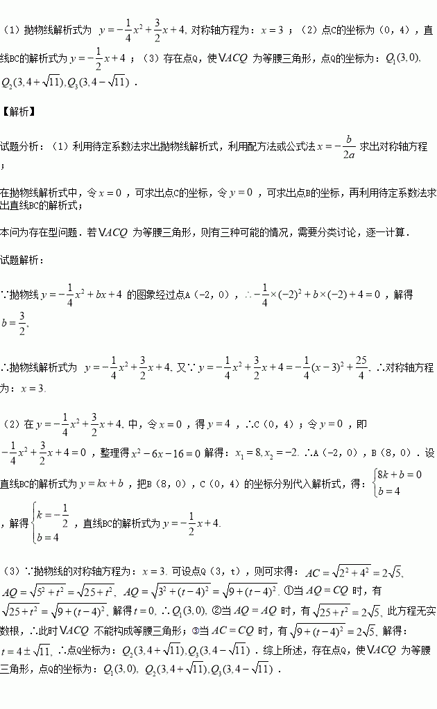(3)在抛物线的对称轴上是否存在点Q,使△ACQ为等腰三角形?若存在,求出符合条件的Q点坐标;若不存在,请说明理由.