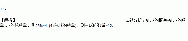 在一个不透明的口袋中装有4个红球和若干个白球,它们除颜色外其他完全相同,通过多次摸球试验后发现,摸到红球的频率稳定在25%附近,则口袋中白球可能有 个.