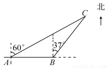 一艘观光游船从港口A处以北偏东60°的方向出港观光,航行80海里至C处时发生了侧翻沉船事故,立即发生了求救信号,一艘在港口正东方向B处的海警船接到求救信号,测得事故船在它的北偏东37°方向,马上以40海里/时的速度前往救援,求海警船到达事故船C处所需的大约时间.(参考数据:sin53°≈0.8,cos53°≈0.6)