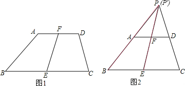 分析 假设直线AB、CD交于点P,直线AB、EF交于点P′.由AD∥BC,得出△PAD∽△PBC,根据相似三角形对应边成比例得出$\frac{PA}{PB}$=$\frac{AD}{BC}$,而AD=2AF,BC=2BE,那么$\frac{PA}{PB}$=$\frac{2AF}{2BE}$=$\frac{AF}{BE}$;由AF∥BE,得出△P′AF∽△P′BE,根据相似三角形对应边成比例得出$\frac{P′A}{P′B}$=$\frac{AF}{BE}$,等量代换得到$\frac{PA}{PB}$=$\frac{P′A}{P′B}$,根据比例的性质得出$\frac{PA}{AB}$=$\frac{P′A}{AB}$,又P、P′都在BA的延长线上,所以P、P′重合,从而证明直线AB、CD、EF交于一点P.