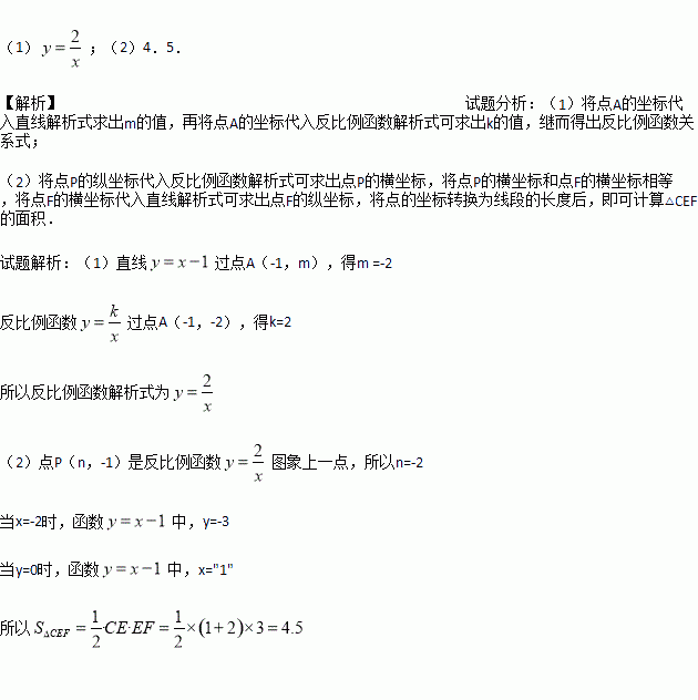 (2)若点P(n,﹣1)是反比例函数图象上一点,过点P作PE⊥x轴于点E,延长EP交直线AB于点F,求△CEF的面积.