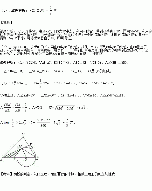 如图,在△ABC中,AB=AC,E是BC中点,点O在AB上,以OB为半径的⊙O经过点AE上的一点M,分别交AB,BC于点F,G,连BM,此时∠FBM=∠CBM.