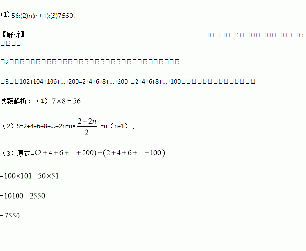 (3)利用上题中的公式计算102+104+106+…+200的值(要求写出计算过程).