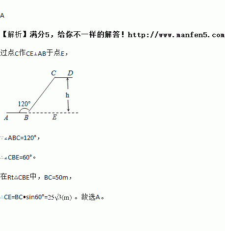 如图是某水库大坝横断面示意图.其中AB、CD分别表示水库上下底面的水平线,∠ABC=120°,BC的长是50m,则水库大坝的高度h是