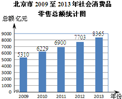 | 北京市2010至2013年社会消费品零售总额年增长率统计表 | ||||