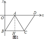 分析 (1)过点A作AH⊥于H,构造直角三角形,由勾股定理求得AH=5$\sqrt{3}$,OA=5,得到点A,B的坐标,利用待定系数法求得直线的解析式.