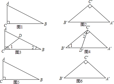 5.如图1和图2,在△ABC和△A′B′C′,其中∠C=∠C′=90°,且两个三角形不相似.问:能否分别用一条直线分割这两个三角形,使△ABC所分割成的两个三角形与△A′B′C′所分割成的两个三角形分别对应相似?如果能,请设计出分割方案;如果不能,请说明理由.
