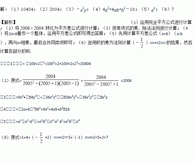(4)(2a+b﹣4)(2a+b+4);(5)a2(a+b)(a-b)+a2b2 ;(6)(2﹣π)0+(
