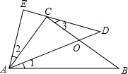 分析 先由△ABC≌△ADE,根据全等三角形的对应角相等得出∠CAB=∠EAD,∠B=∠D,利用等式的性质得出∠CAB-∠CAD=∠EAD-∠CAD,即∠1=∠2.设AD与BC交于点O.根据三角形外角的性质得到∠BOD=∠1+∠B=∠3+∠D,而∠B=∠D,所以得出∠1=∠3,于是∠2=∠3=20°.