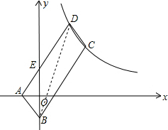 (2)设E点坐标为(0,t),利用线段中点坐标公式得D点坐标为(1,2t),然后利用平移的性质得到点C(2,-2+2t),再利用反比例函数图象上点的坐标特征得k=1×2t=2×(-2+2t),解得t=2,进而求出k的值.