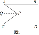 分析 (1)过点P作PQ∥AB,根据平行线的性质得出∠APQ=∠A,∠CPQ=∠C,即可得出答案;