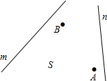 如图,某公司要在公路m,n之间的S区域修建一所物流中心P.按照设计要求,物流中心P到区域S内的两个社区A、B的距离必须相等,到两条公路m、n的距离也必须相等.那么物流中心P应建在什么位置才符合设计要求?请你在图中画出它的位置并标出所求.(保留画图痕迹)