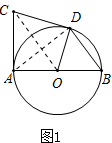 分析 (1)连接OC,AD,根据切线性质得出CA=CD,OC平分∠ACD,推出AD⊥OC,根据圆周角定理得出AD⊥BD,根据平行线的判定得出OC∥BD,根据平行线的性质∠AOC=∠B,在RT△AOC中,tan∠AOC=$\frac{AC}{OA}$=$\frac{4}{3}$,从而求得tan∠B的值;