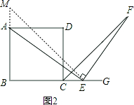 证明:如图2,延长BA到M,使AM=CE,![]()