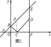 分析 (1)由在y=x+2中,令x=0得y=2,y=0得x=-2,得到OA=2,OB=2,△AOB是等腰直角三角形,再有DF⊥OC,得到△BOC∽△CFD,得比例式求解;