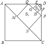 分析 由勾股定理求出AC,由正方形的性质得出△AMQ、△CNP是等腰直角三角形,得出AM=MN=CN,得出MN=$\frac{1}{3}$AC=$\frac{\sqrt{2}}{3}$a,同理:GH=$\frac{1}{3}$PQ=$\frac{\sqrt{2}}{{3}^{2}}$a,…,得出规律,即可得出结果.