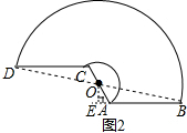 如图2,连接OB,过O点作AB的垂线交BA的延长线于E,