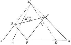 分析 分别延长AE、BF交于点H,易证四边形EPFH为平行四边形,得出G为PH中点,则G的运行轨迹为三角形HCD的中位线MN.再求出CD的长,运用中位线的性质求出MN的长度即可确定③正确;又由G为EF的中点,∠EPF=90°,可知②错误.根据直角三角形两直角边的差越大,直角三角形的面积越小,可求得答案.