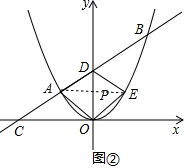 ②连结AE交OD于P,如图②,点A(m,m2)关于y轴的对称点E的坐标为(-m,m2),则OP=m2,由于k=m+n,b=-mn,则D(0,-mn);若四边形AOED为菱形,根据菱形的性质OP=DP,即-mn=2m2,可解得n=-2m;若四边形AOED为正方形,根据正方形的性质得OP=AP=OP=PD,易得m=-1,n=2.