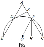 (2)先证明△OCF是等边三角形,得出CF=OC=$\frac{1}{2}$BC=$\frac{1}{2}$AB=2,再由三角函数即可求出FH,然后根据扇形和三角形的面积公式即可得到结论.