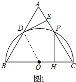 分析 (1)连接OD,由等边三角形的性质得出AB=BC,∠B=∠C=60°,证出△OBD是等边三角形,得出∠BOD=∠C,证出OD∥AC,得出DE⊥OD,即可得出结论;