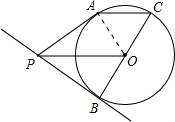 分析:直线PB是与⊙O相切,连接OA,要证明PB是⊙O的切线只要证明∠OBP=90°即可;可利用已知条件可以证明△PAO≌△PBO,即可得到∠OBP=∠OAP=90°.