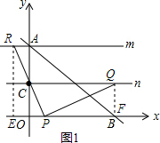 (3)当P在线段OB上时,△PRQ是等腰直角三角形,则∠RPQ=90°,RP=PQ,如图1,