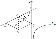 分析 (1)连接AC,交OB于E,由菱形的性质得出BE=OE=$\frac{1}{2}$OB,OB⊥AC,由三角函数tan∠AOB=$\frac{AE}{OE}$=$\frac{1}{2}$,得出OE=2AE,设AE=x,则OE=2x,根据勾股定理得出OA=$\sqrt{5}$x=$\sqrt{5}$,解方程求出AE=1,OE=2,得出OB=2OE=4,得出A、B的坐标,由待定系数法即可求出一次函数的解析式;再求出点D的坐标,代入反比例函数y=$\frac{{k}_{2}}{x}$,求出k2的值即可;