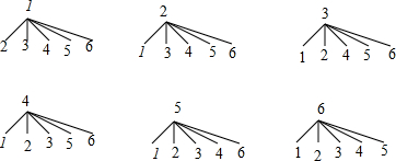 分析 先利用特殊角的三角函数值得到sin30°=cos60°,cos30°=sin60°,用数字1、2、3、4、5、6分别代表sin30°、cos30°、tan30°、sin60°、cos60°、tan60°,画出树状图展示所有30种等可能的结果数,找出所抽卡片上三角函数值相等的结果数,然后根据概率公式求解.