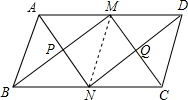 分析 首先证得四边形AMCN与四边形BNDM是平行四边形,继而可证得四边形PMQN为平行四边形,四边形ABNM是菱形,又由AN⊥BM,则可得四边形PMQN是矩形.