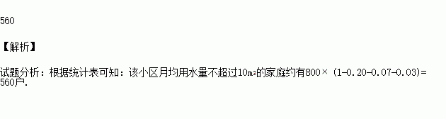 若该小区有800户家庭,据此估计该小区月均用水量不超过10m3的家庭约有 户